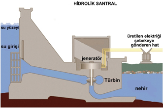 Böylece su daha az rakımlı bir yerden daha yüksek bir noktaya pompalanır. Daha yukarda bulunan bu sı daha sonra tekrardan aşağıya bırakılır ve böylece türbinlerin dönmesi ve elektrik üretimi sağlanır. Küçük veya mikro hidroelektrik sistemleri bir evin veya bir çiftliğin elektrik ihtiyacını karşılayabilir.