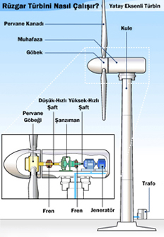 Rüzgar Santralleri kurulduktan sonra pervaneler rüzgarın (havanın) hareketiyle bağlı oldukları şaftı döndürür. Uygun bir jeneratör ile de bu hareket enerjisi elektrik enerjisine dönüştürülür.